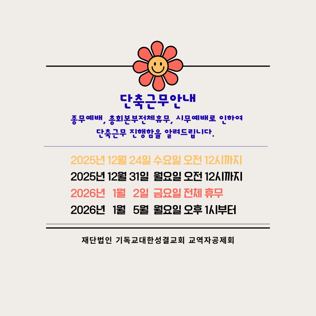 공지사항 + 전체보기 2025년도 자격정지회원들께 안내드..2025-12-04 2026년 목사안수 예정 회원님께 ..2025-11-21 성결신문 기사 (한국성결신문/202..2025-04-16 교역자공제회 50주년 (한국성결신문..2025-04-16 2024년도 자격정지 회원들에게 알..2024-12-19